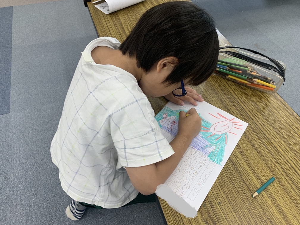 始めたばかりの頃は、絵が苦手な子は文章だけであったり、文章が苦手な子は絵だけであったりといった様子がありましたが、最近では苦手な部分も頑張ってやってみようとする前向きな姿勢が見られるようになりました❗