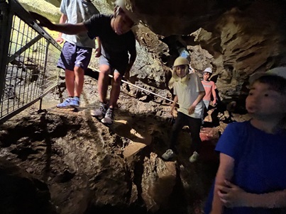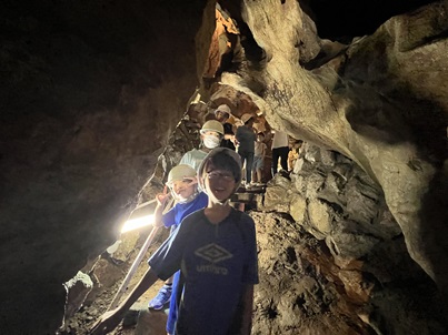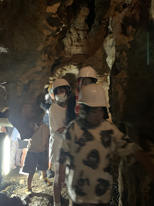 鷲沢風穴では、洞窟内は少し涼しいことを感じながらコウモリや苔など自然に触れることができたり、洞窟は天井が低い場所もあり「腰痛くなった~」「2回行ったから暑かった~」感想を言いと楽しめた様子でした😊